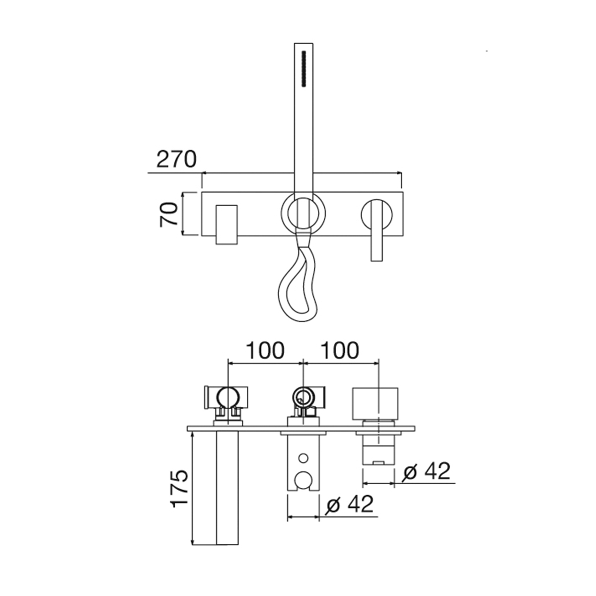 Monocomando Vasca incasso con deviatore, doccetta e bocca d erogazione