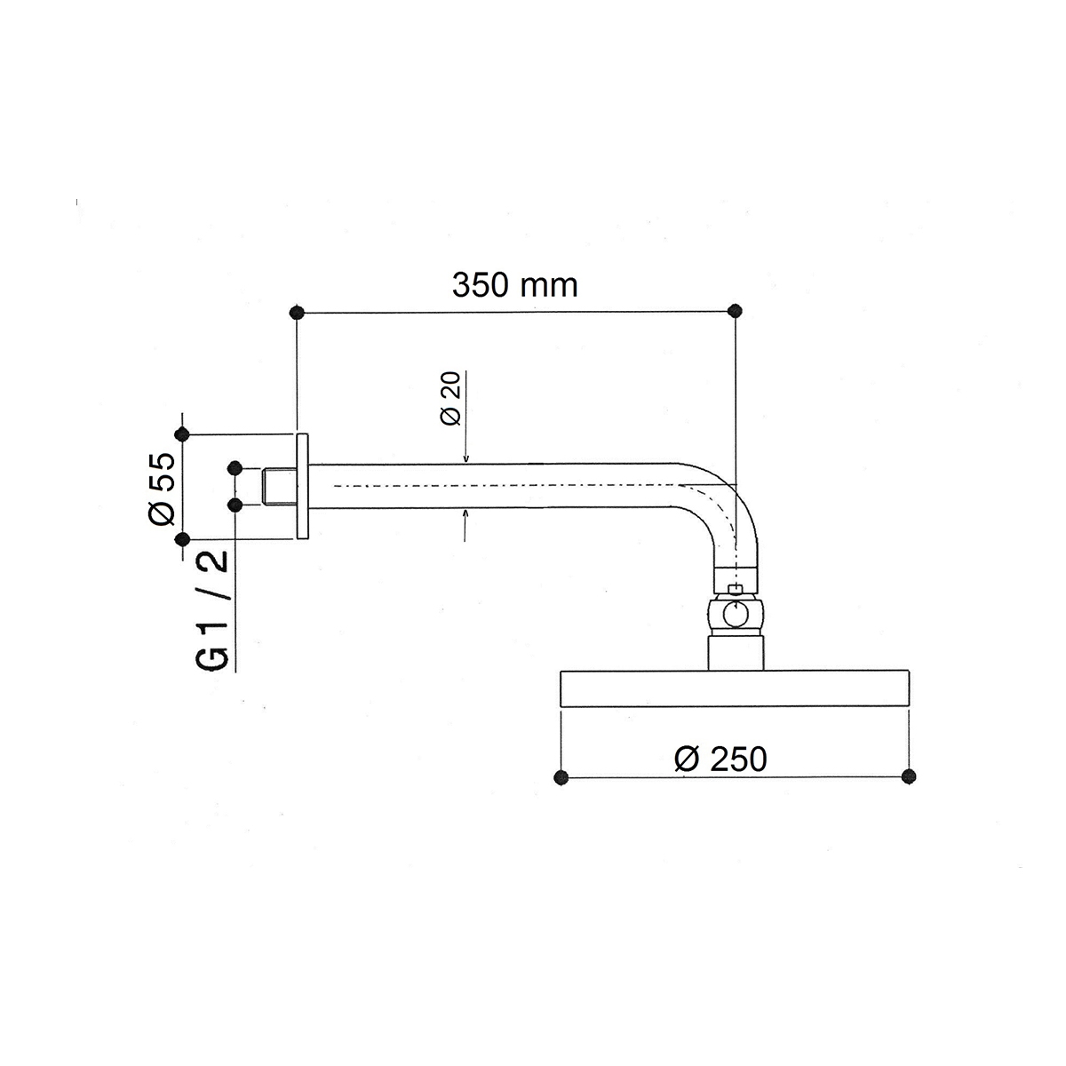 Braccio doccia con soffione in metallo Ø 250
